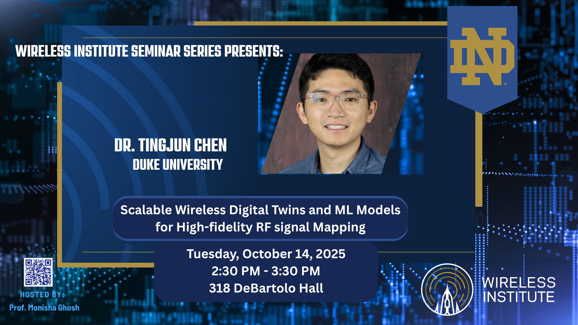 Bio: Tingjun Chen is the Nortel Networks Assistant Professor of Electrical & Computer Engineering at Duke University, with a secondary appointment in Computer Science. His research focuses on the networking, communication, sensing, and energy-efficient computing aspects of wireless, mobile, and optical networked systems, bridging both theoretical foundations and experimental platforms. He received his Ph.D. degree in Electrical Engineering from Columbia University in 2020, and his B.Eng. degree in Electronic Engineering from Tsinghua University in 2014. Between 2020–2021, he was a Postdoctoral Associate at Yale University. He has received multiple awards including the NSF CAREER Award, Google Research Scholar Award, IBM Academic Awards, NVIDIA Academic Awards, Columbia Engineering Morton B. Friedman Memorial Prize for Excellence, Columbia University Eli Jury Award, and the Facebook Fellowship. He is also a co-recipient of several paper awards from ACM CoNEXT, ACM MobiHoc, IEEE MTT-S IMS, IEEE/Optica OFC, and ECOC. His Ph.D. thesis was recognized by the ACM SIGMOBILE Dissertation Award Runner-up.