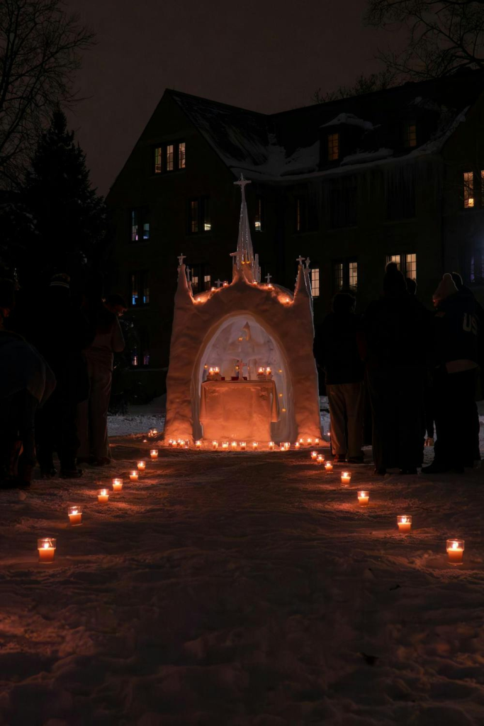 St. Olaf’s Ice Chapel, built by Engineering student Martin Soros and Architecture student Wesley Buonerba, draws national attention and inspires more than 2,000 students to attend mass at the chapel.